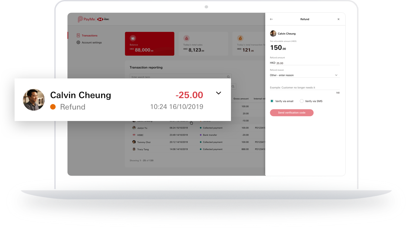 Initiate refunds for payments collected through the PayMe for Business app, online or POS terminal. You can now log on to the portal and manage your refunds without any additional integration.