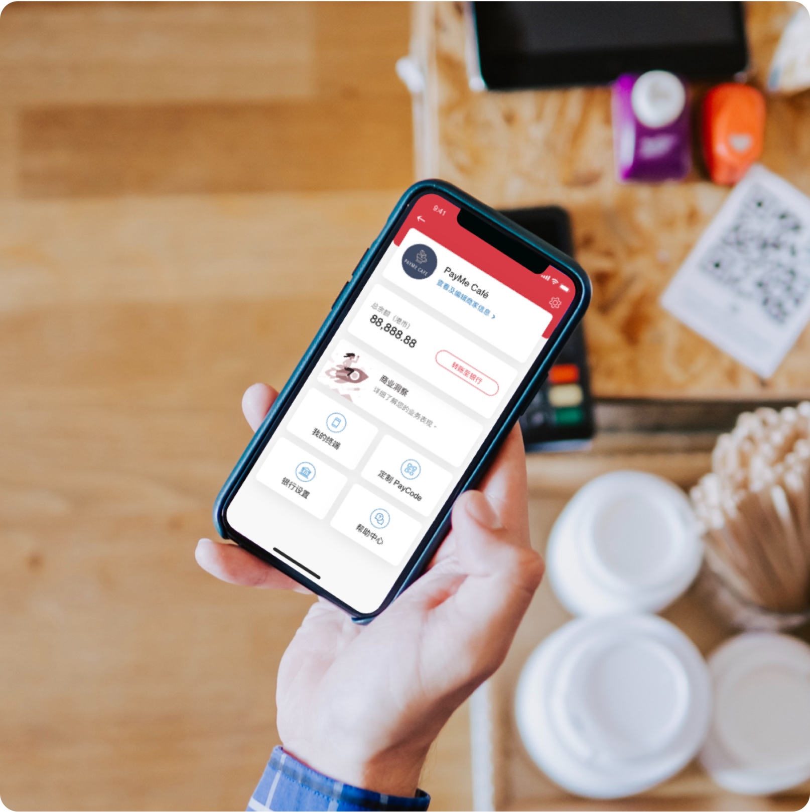 - 轻松集成到现有的电子收银系统,通过商家出示的二维码便可接收 PayMe 付款