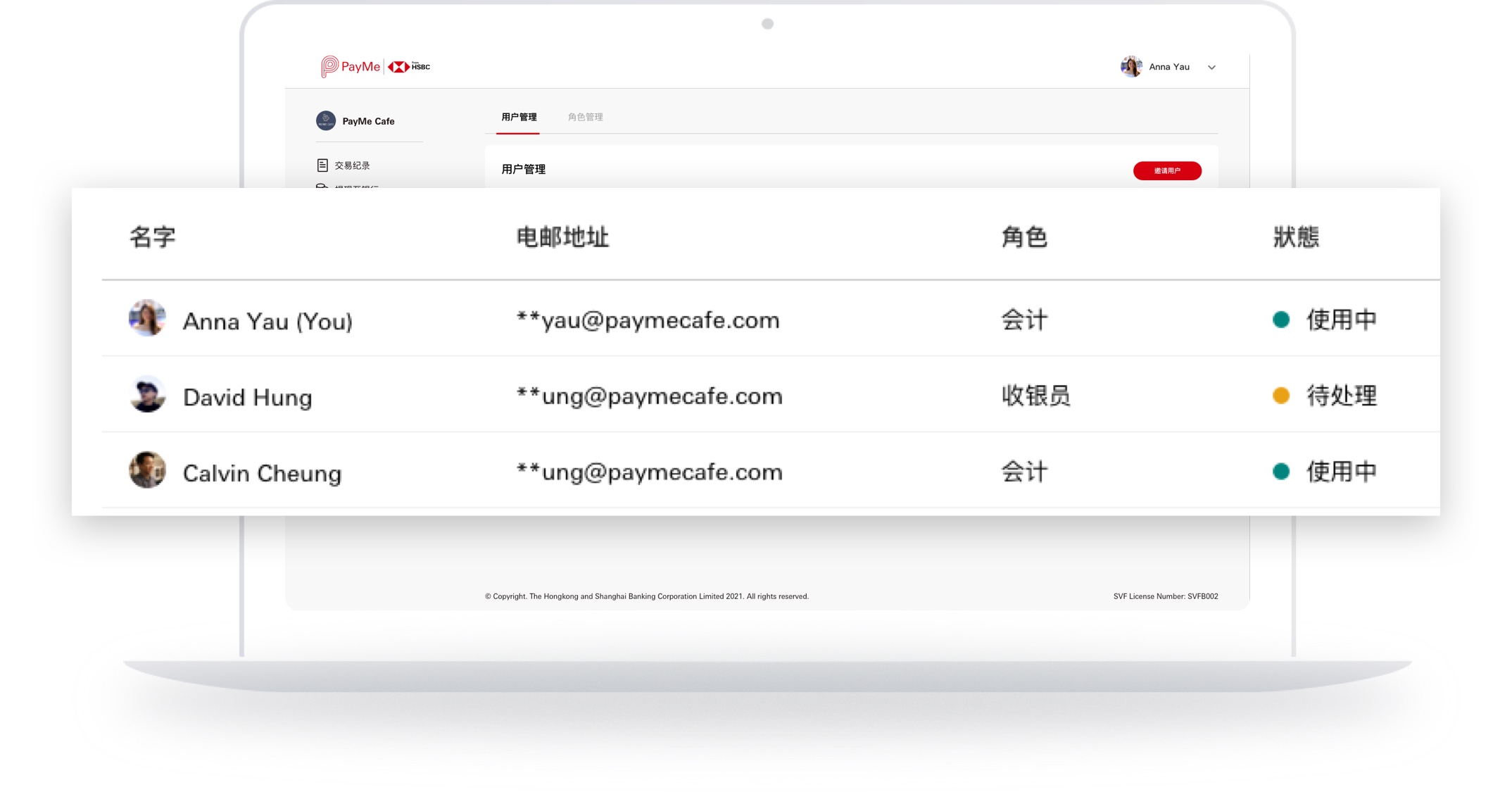无论您是使用 PayMe for Business 应用程序、移动/网页版收款,或是 POS 终端机收款,您也可以通过网上管理平台实时查看及管理交易。