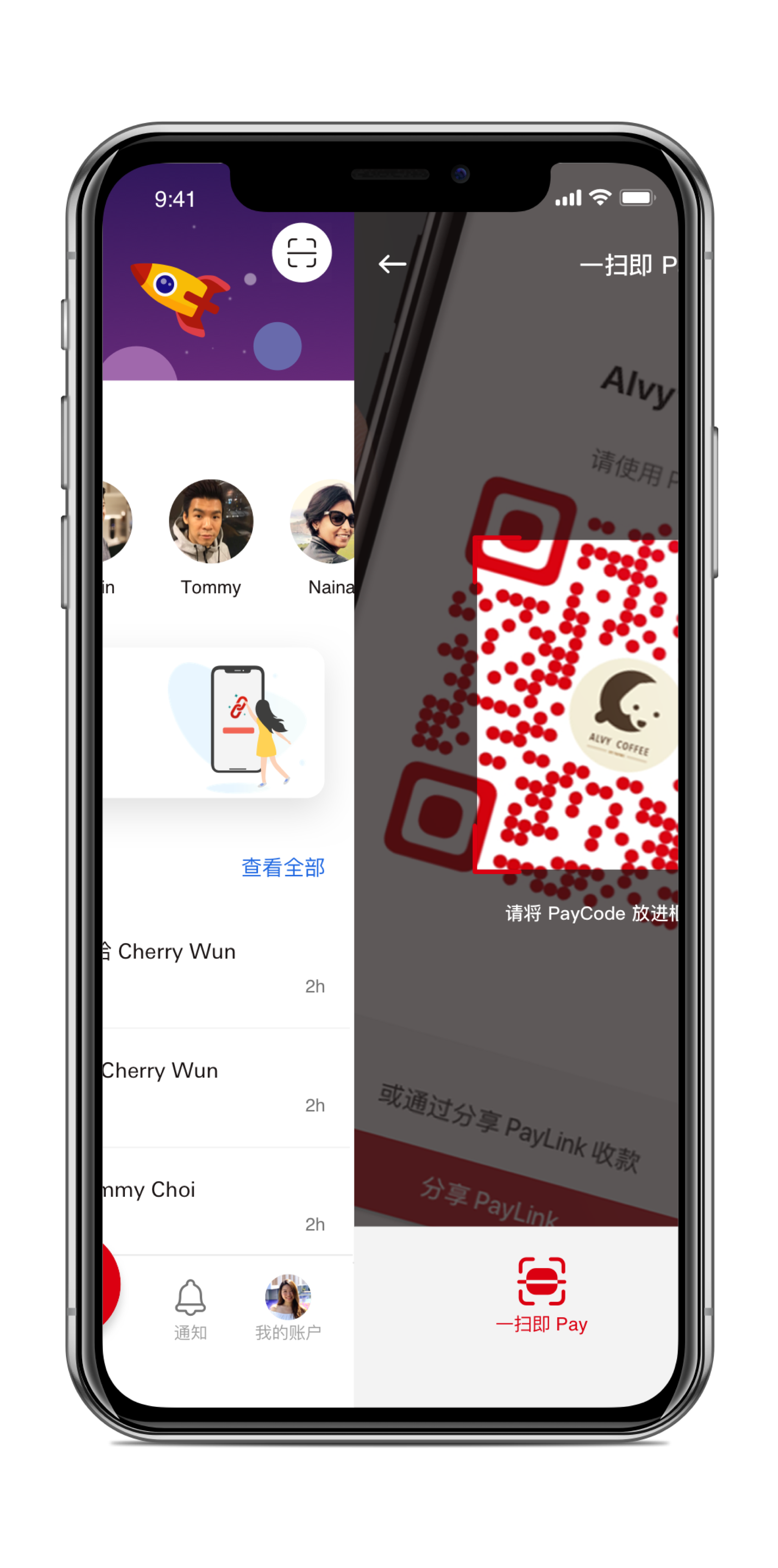 用 PayMe 于城中的至爱商店付款 ── 只需于主页向左扫以打开扫描器,扫一扫 PayCode 即可付款。您也可以用 PayCode 转账给朋友,方便快捷!