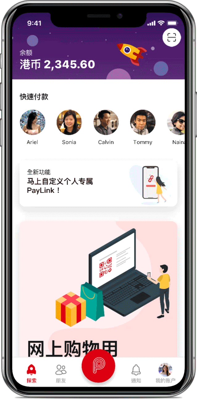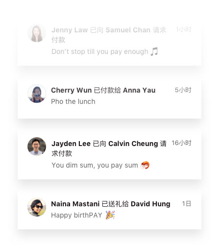 注册简单,瞬间启用,轻松联系已在使用 PayMe 的亲朋好友,更可邀请未使用的朋友一同加入!PayMe 现已开放给年满 12 岁的人士使用。