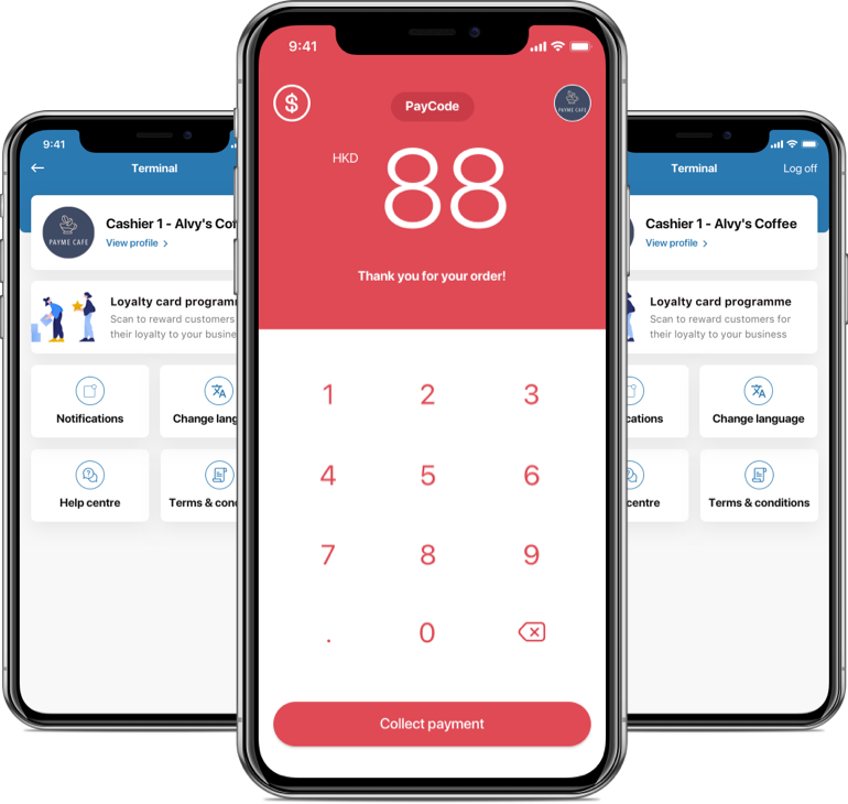 PayCode 提供一種簡單、安全的方式助您遠距離收款,讓您輕鬆透過 WhatsApp、手機短訊或電郵收取款項——向您的顧客發送 PayCode,對方只需掃描即可付款!