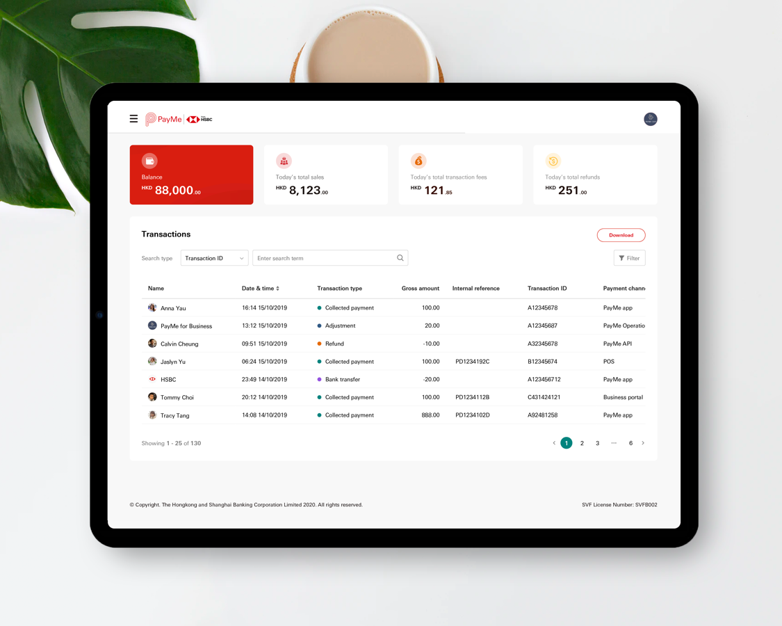 無論您是使用 PayMe for Business 應用程式、流動/網頁版收款,或是 POS 終端機收款,您都可以透過網上管理平台實時查看及管理交易。